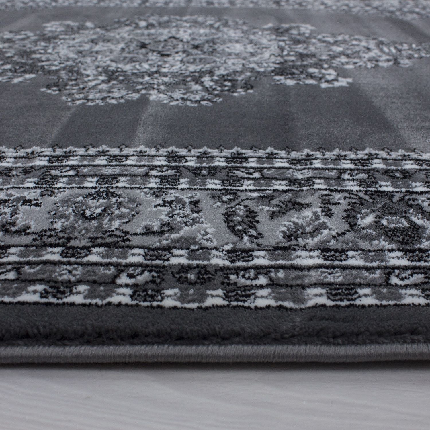 60 % Polypropylene, 31 % Jute, 4 % Polyester, 5 % Latex 100 % PP. Heatset, Florhöhe: 12 mm, 400.000 Points, 2500 gr (±%5)M2, Rücken aus Jute Klassische & Orientteppiche, Orientalisch Design, Farbe Grau, Teppich für Wohnzimmer, Rücken aus Jute